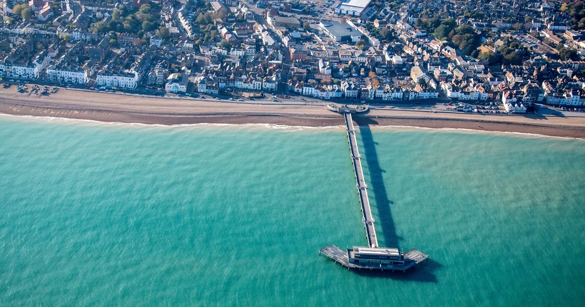 Aerial view of Deal and it’s pier, taken from a light aircraft