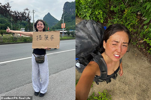 A 26-year-old who spent just £15 on transport hitchhiking across Africa says she has since travelled from Guangzhou in China to the Russia-Mongolia border ‘without spending a penny’.
