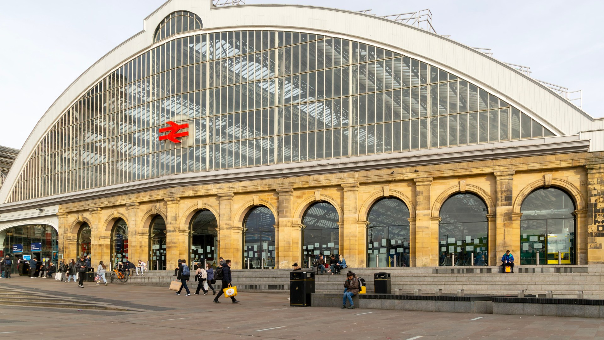 Exterior frontage of Lime Street railway station in Liverpool, England, UK.