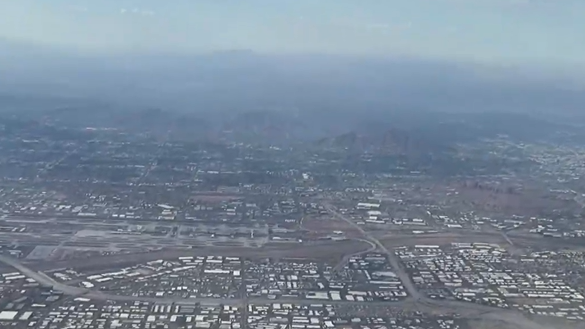 Shannon Myers shares a video of a dust storm as her plane flies through it on July 21, 2025, while landing at Phoenix Sky Harbor International Airport.