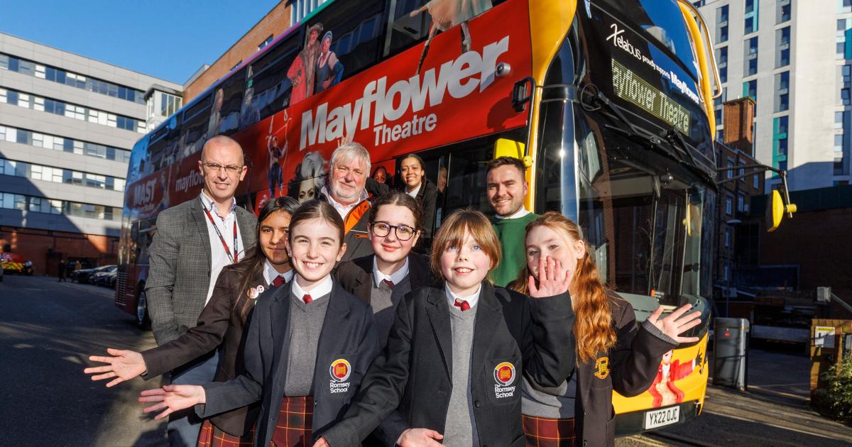 Pupils from The Romsey School and Mayflower Theatre bus(Image: Robin Jones)