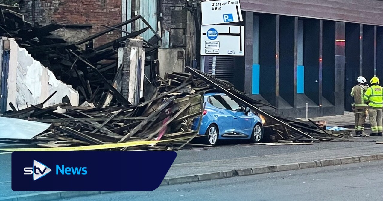 A building collapsed in Glasgow on Friday, falling onto a car, and leading to road closures in the city centre.