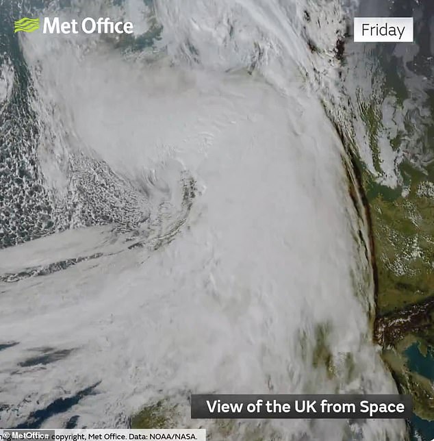 ‘Amy catches this wave to perfection and it undergoes a process called explosive cyclogenesis on Friday, which just means it rapidly intensifies.’