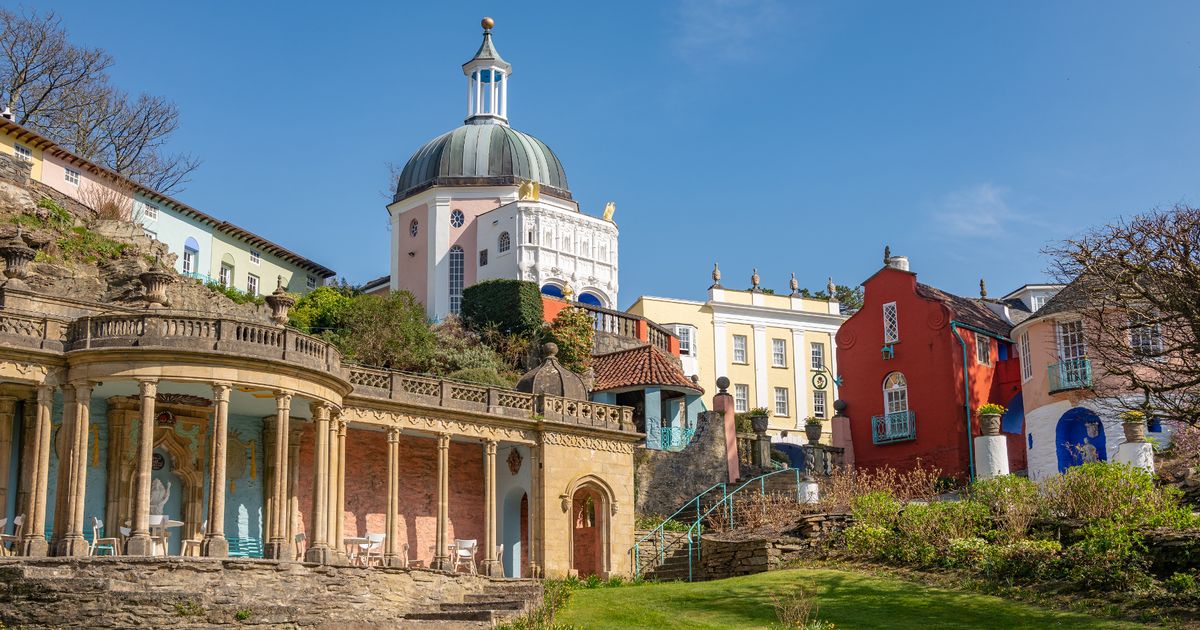 Portmeirion in Wales welcomes 200,000 visitors every year and sits on the estuary of the River Dwyryd, just two miles from Porthmadog and a mile away from Minffordd railway station.