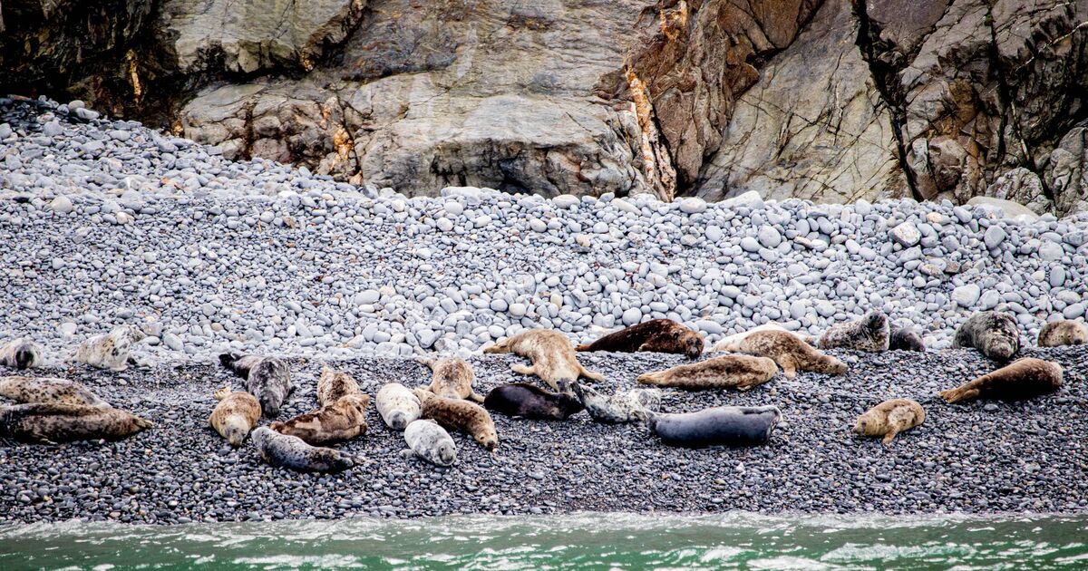 we headed to secluded, pebbled bays where Atlantic grey seals lounged lazily on the rocks (Image: Portia Jones)