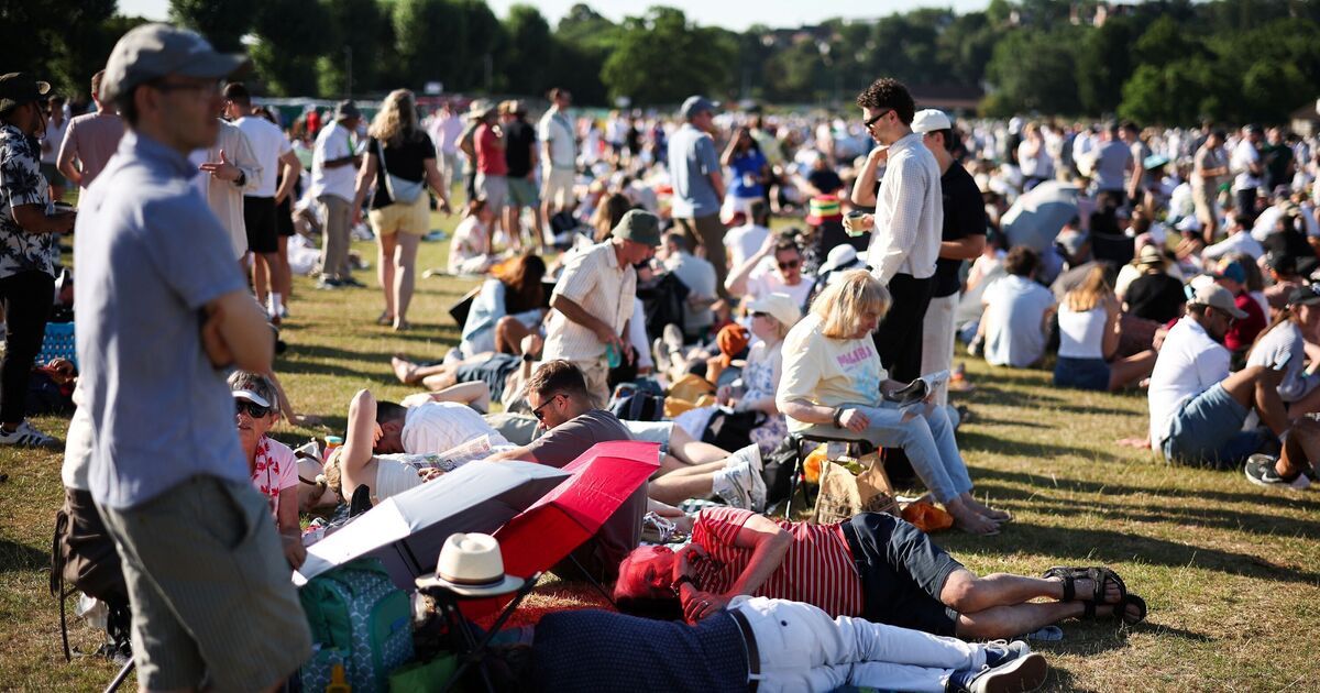 Fans baked in the heat that is set to rise to 34C, with very limited shade. The queue was officially closed at around 9am. Wimbledon reserves 500 Centre Court tickets for supporters to purchase on the day, so those who arrived early will get to watch defending champion Carlos Alcaraz open proceedings at 1.30pm.